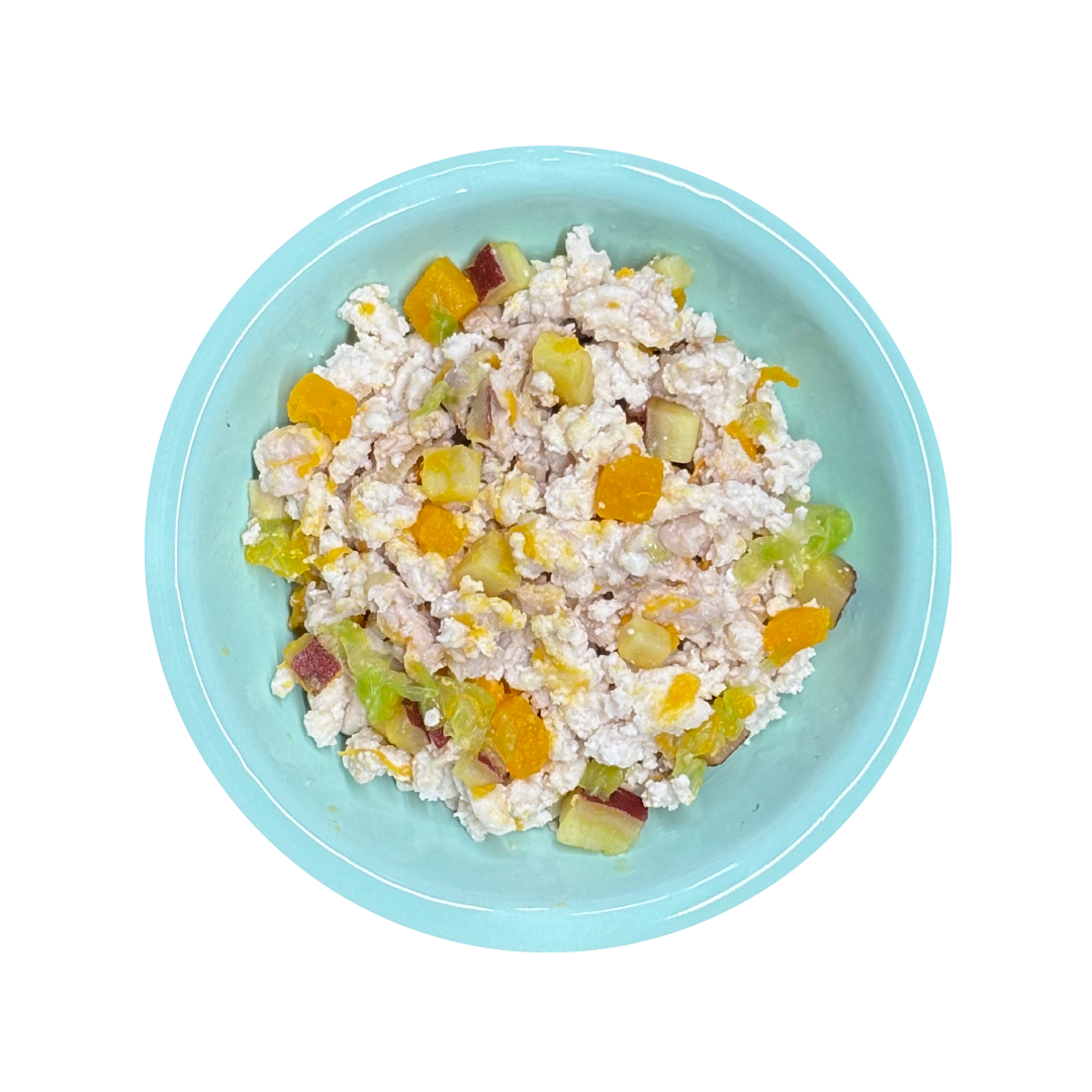 ※原材料:鶏肉(国産)・ボーンブロス(国産鶏ガラスープ)・鶏レバー(国産)・かぼちゃ(国産)・サツマイモ(国産)・キャベツ(国産)・りんご(国産)・ゼラチン(国産)・ひまわり油・Ca・ミネラルブレンド・ビタミンD・羊腸